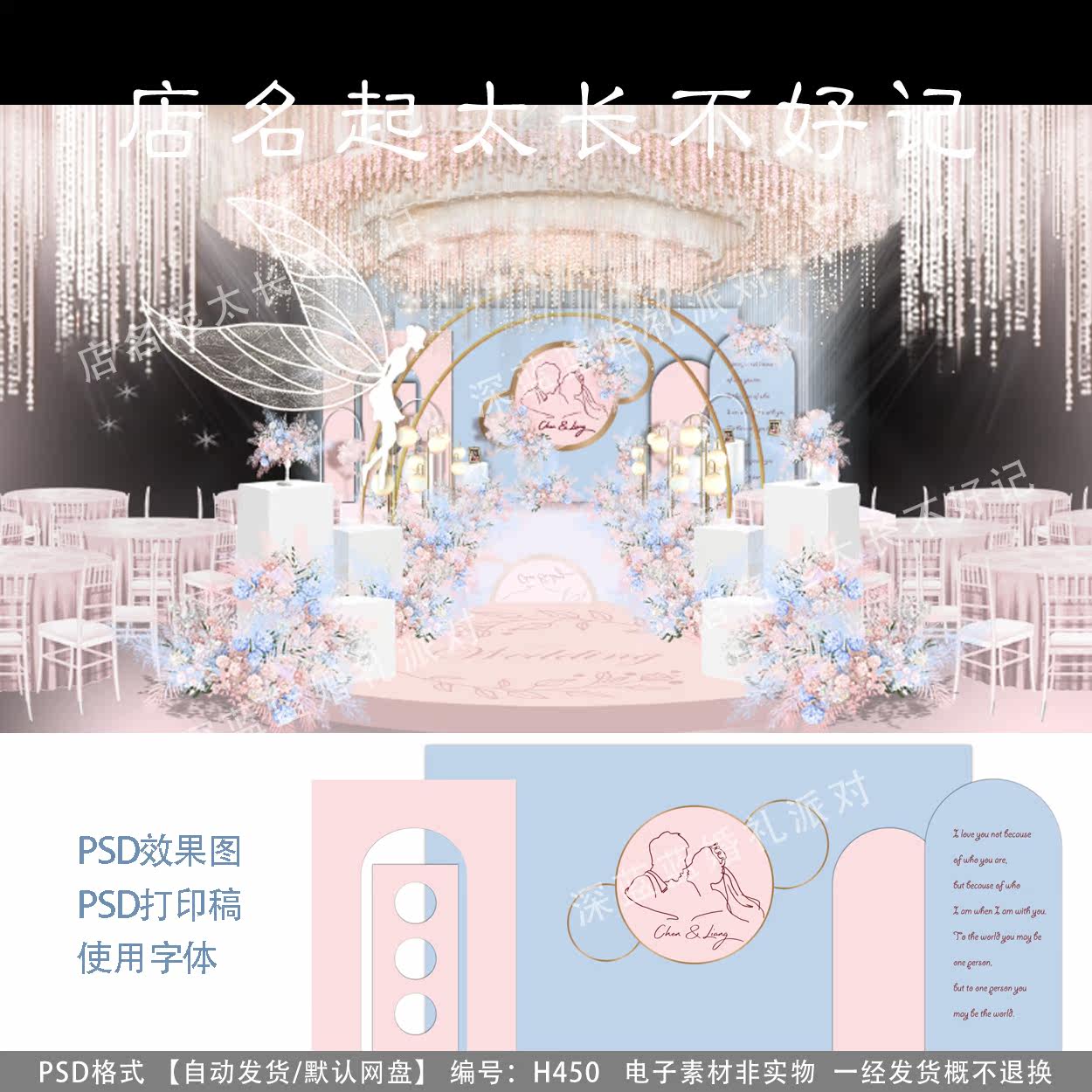 粉蓝色婚礼背景墙设计效果图 小红书网红款婚庆舞台PSD素材模板热门设计联盟服务商