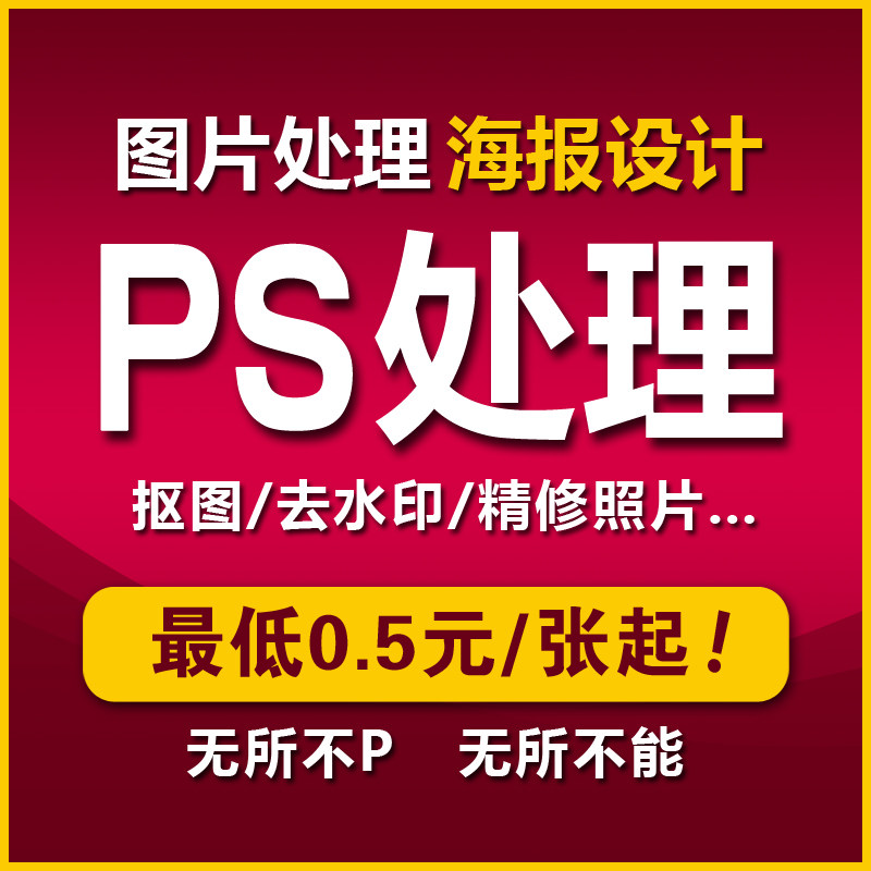 p图片处理ps淘宝美工改字主图海报设计去水印抠图婚纱照精修详情热门设计联盟服务商