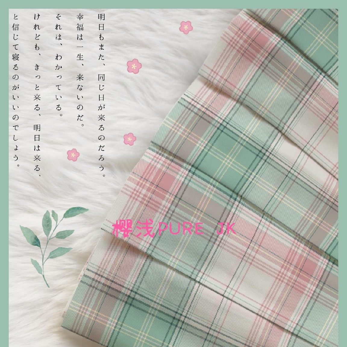 绝美春天jk漫画绿格现货掉落正品原创樱浅PUREJK制服百褶裙半身裙热门设计联盟服务商