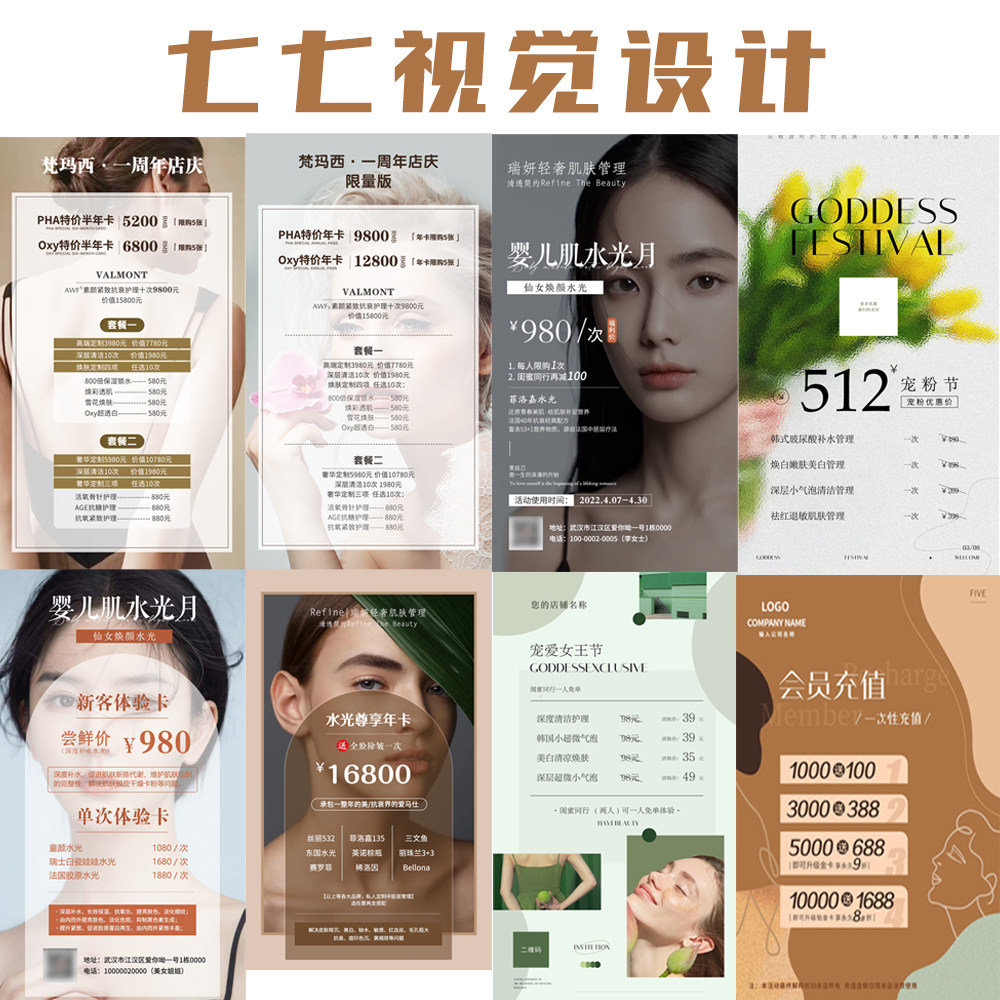 美业朋友圈活动海报设计价格表医美皮肤管理美容院美甲美睫价目表热门设计联盟服务商